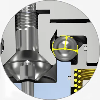 Ang isa pang tampok ng sistema ng zero point ay ang dalawahang pag -andar nito: ang pagpoposisyon at pag -clamping ay isinasagawa nang sabay -sabay, na may katumpakan na mas mababa sa 5 μs. Ang maikling conical na pagpoposisyon ng pin ay ginagawang ganap na sarado ang contact surface at may pag-andar ng self-locking. Ang pagpoposisyon ng clamping ay nagbibigay -daan sa isang tiyak na paglihis ng radial at angular na paglihis, na may ilang mga pakinabang para sa awtomatiko o manu -manong paglo -load at pag -load.