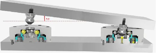 When the fixture is replaced, because it can not be absolutely horizontal, the tray tilt requirements are relatively high, this locator can solve this problem, this locator compared to other brands on the market the tilt Angle of 1.2 degrees, the tilt Angle of this locator allows 30 degrees, the locator uses a ring ball design, special nail contor-free interference design, Therefore, there is no need to ensure absolute level when hoisting the workpiece, which binabawasan ang kahirapan ng operasyon at ang panganib ng pinsala sa zero posisyoner. Bukod dito, ang bawat tray ay naka -embed na may isang makapal na gabay sa pagpoposisyon ng gabay, na dapat magkaroon ng isang tiyak na paglaban sa epekto, na nagpapahintulot sa sira -sira na distansya ng kuko na ± 5mm, pagpapabuti ng kahusayan ng clamping. Ang oras ng pag -hoisting ng papag mula sa labas ng makina hanggang sa tray ng talahanayan ay nabawasan sa pinakamabilis na 5min (kabilang ang pag -disassembling at pagbubuklod at pagtakbo).